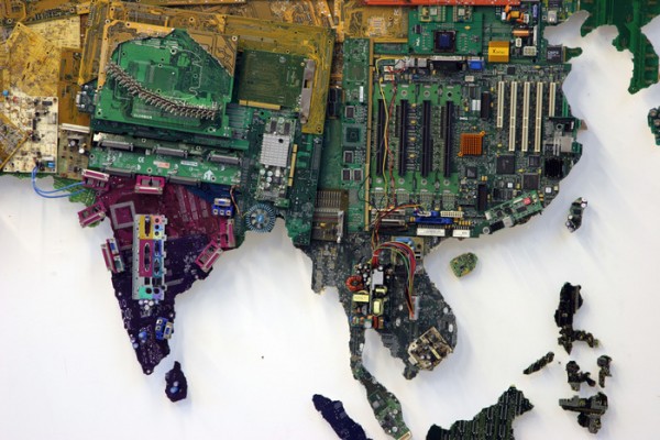 Enormous World Map Made from RecycledComputers by Susan Stockwell